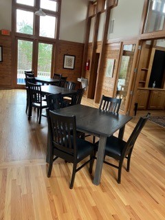 The Re-envisioning of the Highlands Lake Clubhouse (located at 8400 Highland Glen Drive) is continuing. Three new tables and chairs, (like those in the Lake Margaret Clubhouse), were delivered this week to accommodate a 12-person activity area. A big “thank you ” to Jeff Milner and his Highlands Nifty Fifties…Plus (NFP) friends for their voluntary assistance in the unloading and assembly of the furniture for the center section of the Grand Hall space. (Jeff- please personally thank them for me as I don’t have a list.) A soft seating area, which includes a nice comfy, donated sofa and area rug, now occupies the North Wing of the Grand Hall. The remainder of the main floor includes a co-sharing office and an 8 to 10 person meeting room, both furnished with existing furniture..