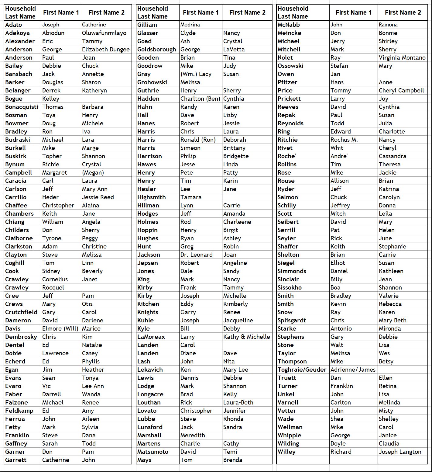 - If you are in the online directory (names only are HERE), but you forgot your password, you can contact the Webmaster who will verify you are in it and then provide a password. This will give you access to addresses, phone numbers, and emails.